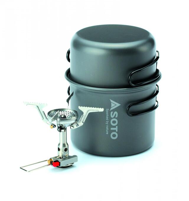 Soto Amicus Combo kombinerer en liten og kompakt Amicus- gassbrenner, med et høykvalitets kjelesett.