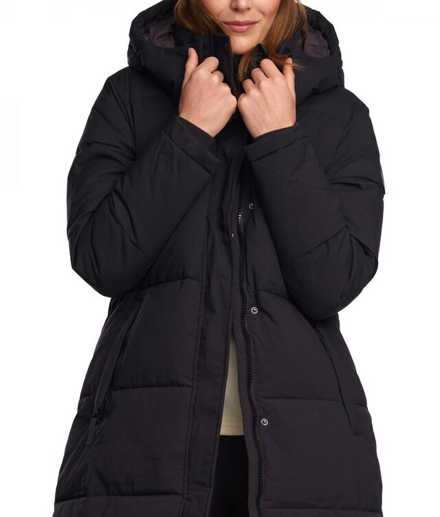 En lang parkas med fast hette i mykt og matt materiale. Den er fylt med et resirkulert og løst fyll som gir en veldig lett og varm vattering. Trykknappelukking på frontklaff med glidelås under samt glidelås på sidelommer med klaff. Mansjetter og innerkrage i myk rib. Den har stramming i livet og på hette for den beste passform. Jakken har god lengde så du holder varmen på kalden dager. Dette er en perfekt jakke å ha i garderoben. UNIFI REPREVE© VATTERING: 100% resirkulert isolasjon produsert av plastflasker.