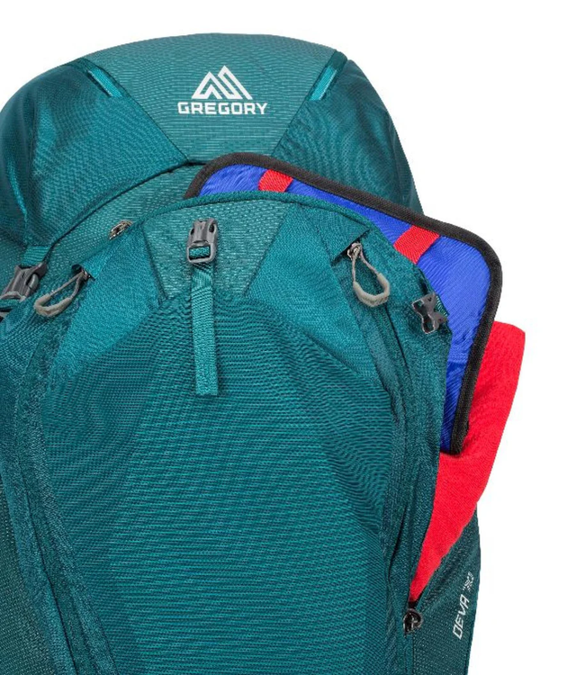Gregory Deva 60 har 60 liters volum. Sekken har 3 innganger til hovedrommet. Gjennom topplokk, en stor U-glidelås i front og gjennom bunn. Dette gjør at du har ekstremt god tilgang og kontroll til innholdet.