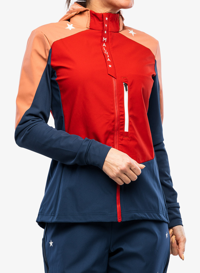 The women's softshell you see in the photos above has a 3-layer construction of Stormshell material in the Warm version and an elastic Thermal Stretch Eco blend. The first of the fabrics is responsible for partial protection against wind and cooling of the body. The second blend, on the other hand, takes care of the Maloja Nesha jacket's stretchability in four directions and proper ventilation around the body.