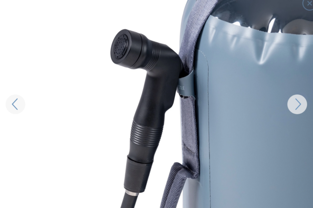 I motsetning til de fleste camp-dusjer som må henges over hodet og