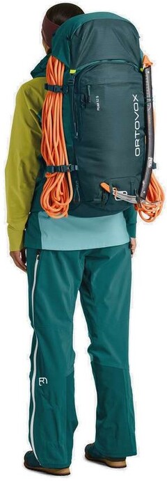 The Peak 52 S is a multifunctional high altitude backpack for demanding alpinists with a short back length who are looking for a durable, versatile and comfortable backpack for large and long multi-day tours or mountain expeditions. Whether sleeping bag, tent, stove, crampons, ice axe, helmet, poles or climbing equipment - on material-intensive high-altitude and, ski tours, the Peak 52 S proves to be a powerful pack mule that offers a clever stowage option for every piece of equipment. Even under heavy loads, the wide, padded shoulder and hip straps and the close-fitting, full-contact back reinforced with metal braces of the unique Swisswool 3D Back System ensure comfortable carrying and optimum load control. The contact surfaces are lined with Swisswool wool fleece on the back, shoulders and hips, which reliably absorbs water vapor and dries quickly. The Peak 52 S also scores with a separate safety compartment, numerous attachment options for rope, ice axe, helmet, skis, snowboard and poles, as well as a side crampon compartment. In the spirit of sustainability, the two main outer materials are made of 100% and 50% recycled polyamide, which makes the backpack extremely robust and durable. Thus, the Peak 52 S brings great freedom to the mountain and is a reliable companion for extended multi-day tours in high alpine terrain.