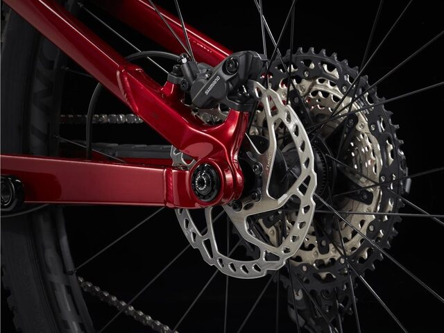 En lett aluminiumsramme med innvendig lagring, 120 mm RockShox SID-gaffel med myk DebonAir fjær, 120 mm vandring bak med en FOX Performance Float demper, og et Shimano XT-drivverk. Samt 4-stempels bremser som gir selvtillit utfor, helt slangeløsklare Bontrager Line Comp 30-hjul med tetningsmiddel, og Bontrager Line-senkepinne.